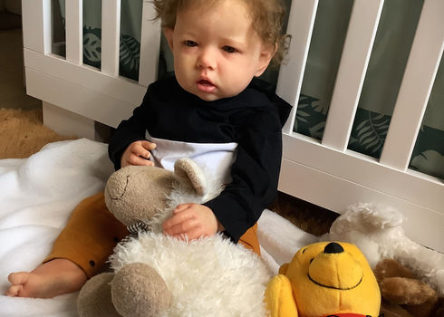 Poupée reborn Liam de Bonnie Brown mesure 28 pouces.